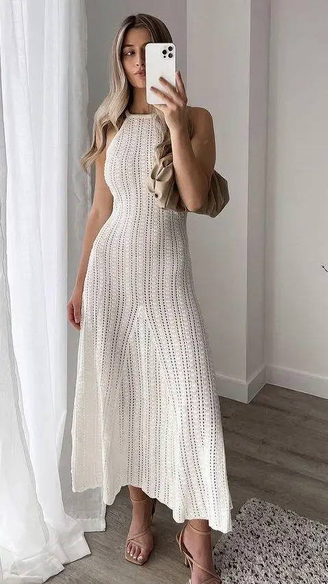 Design sense hollow woven dress spring summer female French sexy bare back heart skirt Europe and the United States solid color