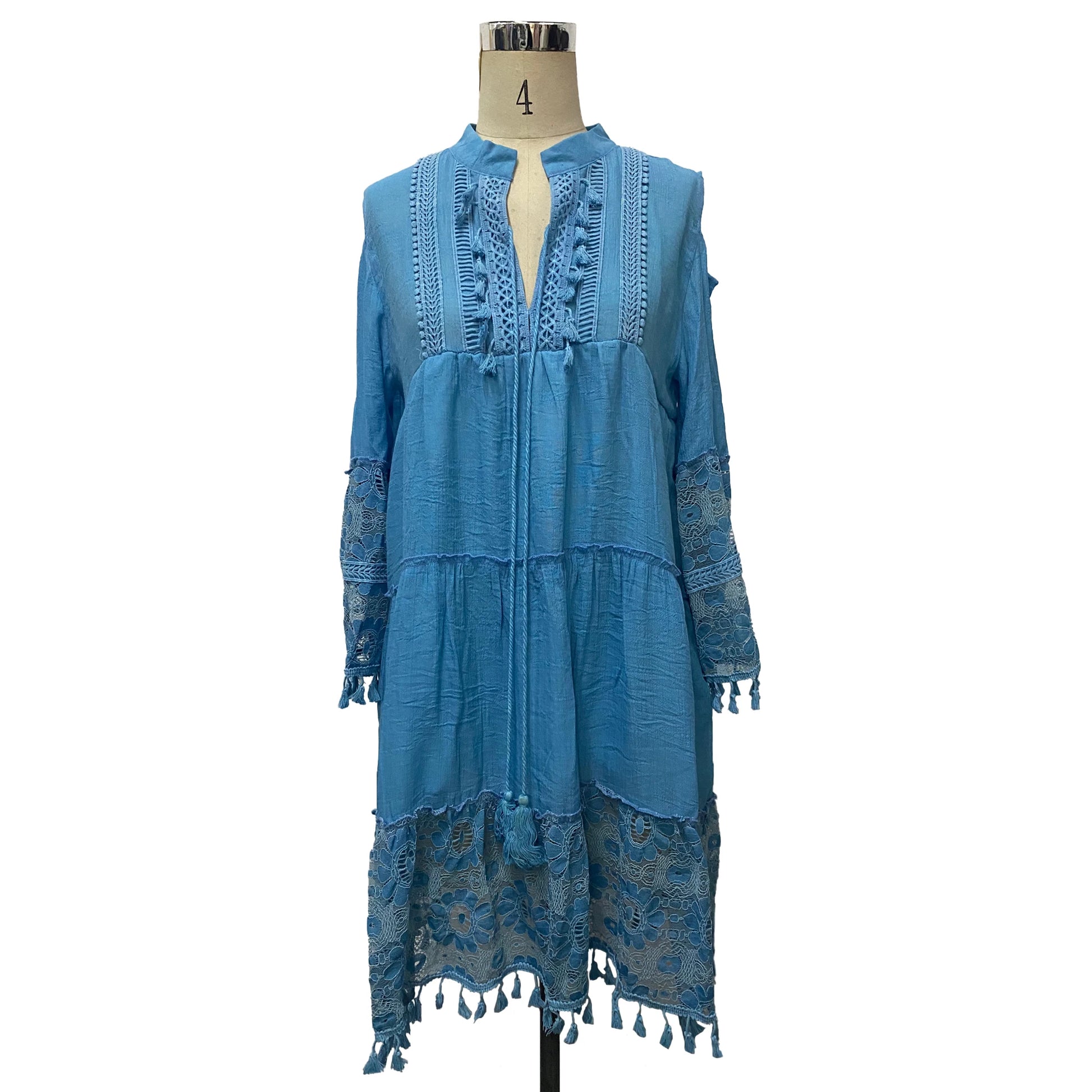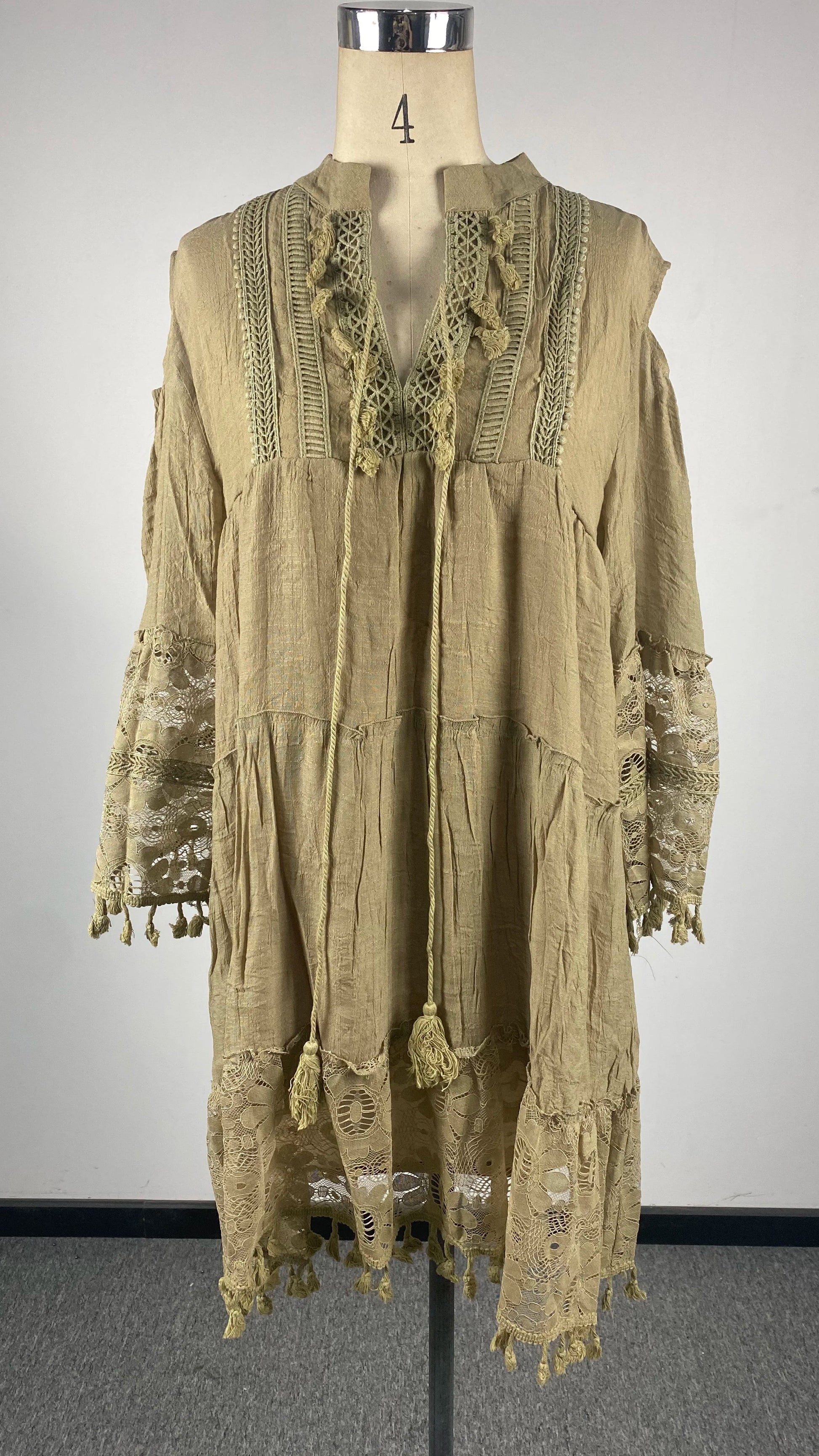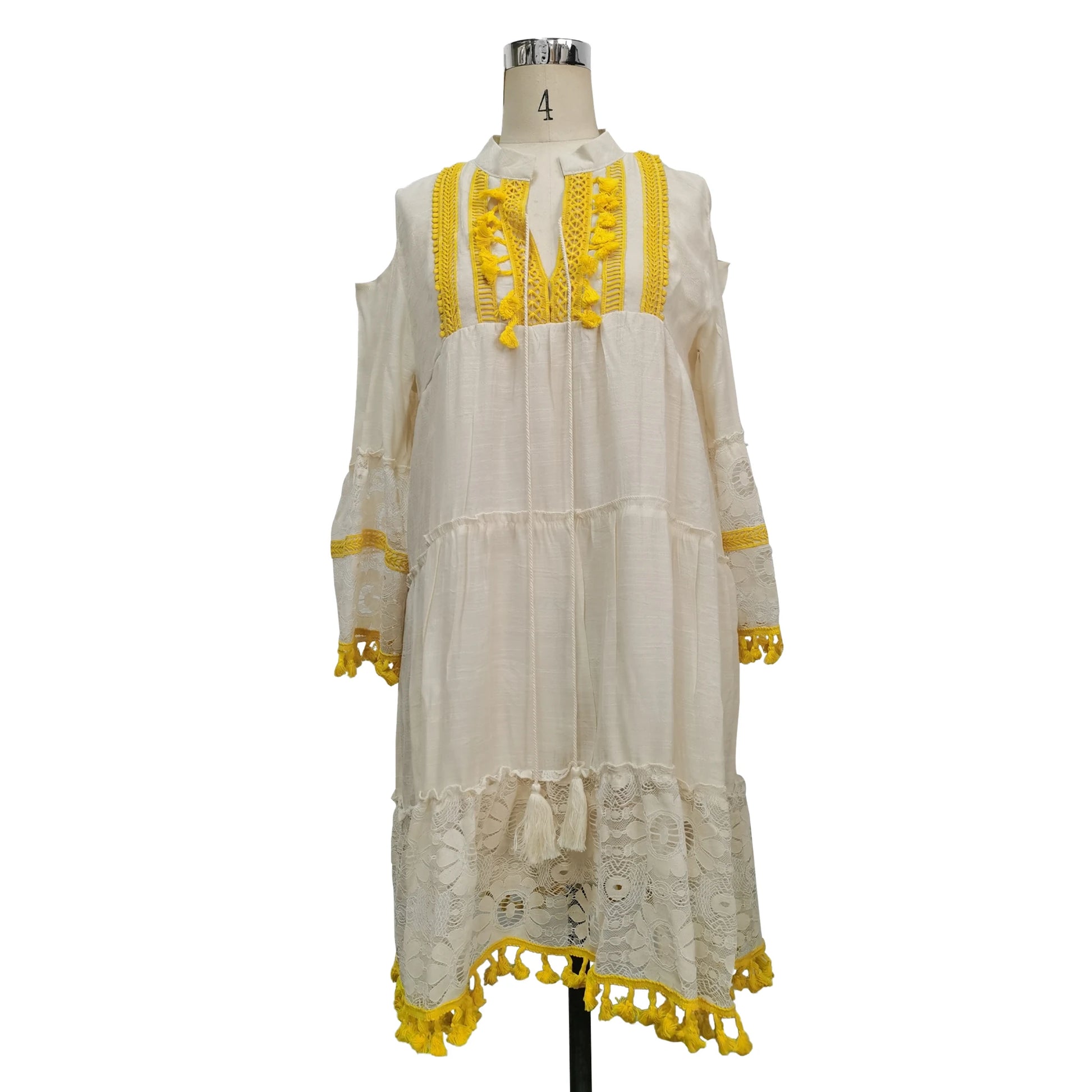 New Spring Embroidery Crochet Lace Boho Dress Women Elegant Off Shoulder Tassel Ruffle Mini Dress Summer V Neck Lady Beach Dress