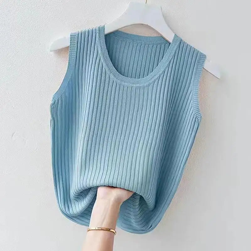 WTEMPO Women Comfortable Solid Color Camisole Laides Summer Bottoming White Short Knitted Sleeveless Top